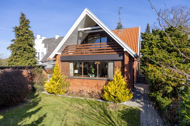 Smuk og velproportioneret gulstensvilla med et væld af elegante, originale detaljer. Ejendommen præsenterer sig med flot glaseret tegltag (2000), ovenlysvinduer og klassiske kviste, som tilsammen giver et harmonisk og tidløst udtryk.