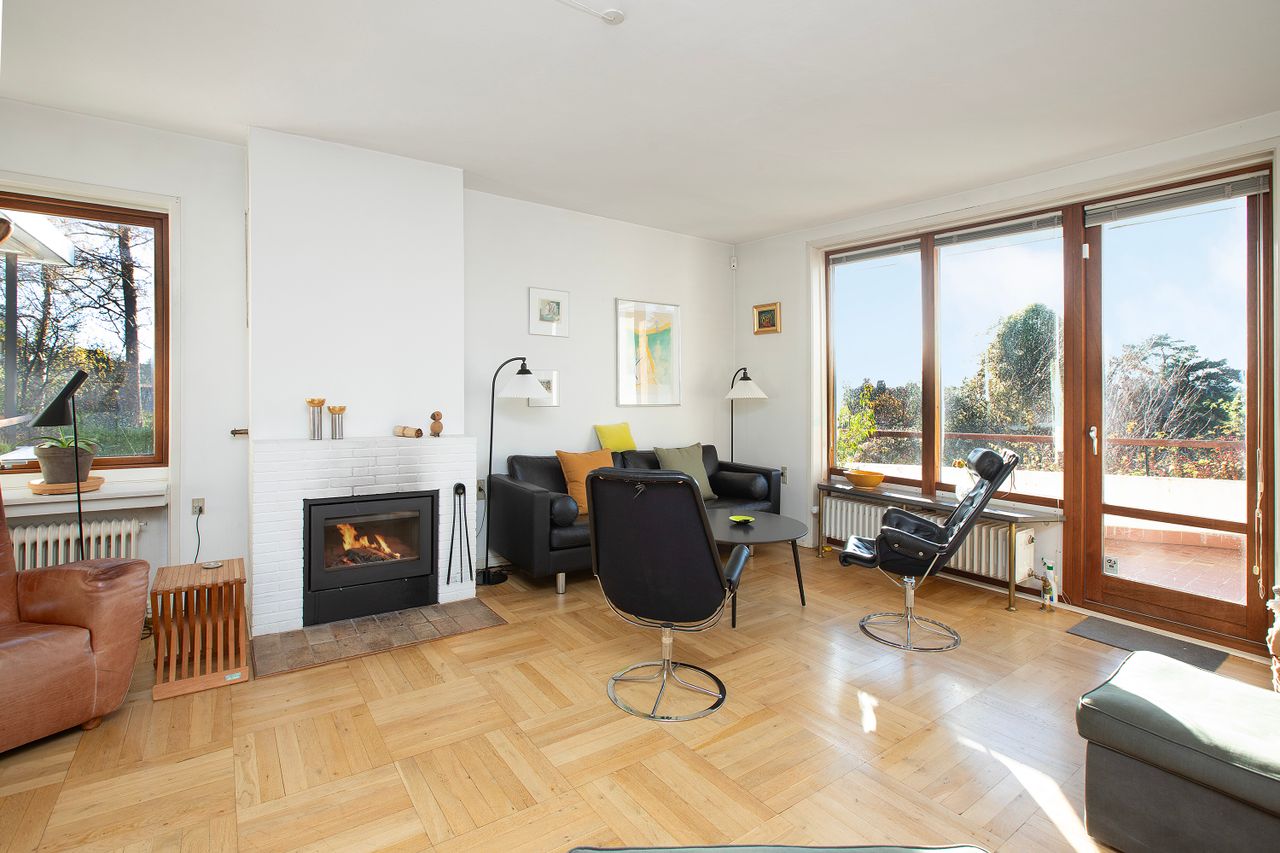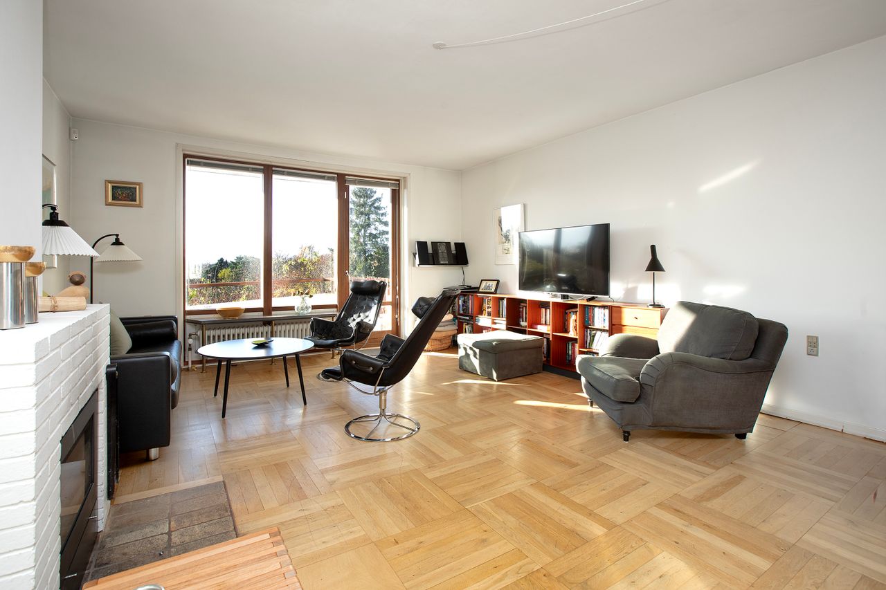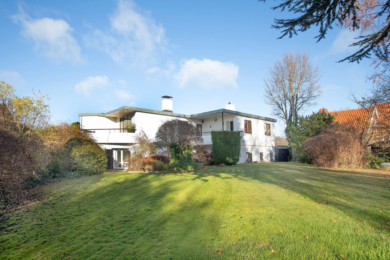 På Soløsevej, i et af områdets mest eftertragtede og naturskønne kvarterer, ligger dette arkitekttegnede dobbelthus med en særligt interessant historie. Huset, tegnet af Jens Houmøller Klemmensen og opført i 1950, hviler på fundamentet af en tidligere bygning fra Jægersborgs gamle forsvarsanlæg. Det giver boligen et udtryk og en karakter, man sjældent møder – en kombination af funktionalistisk arkitektur og historiske lag.