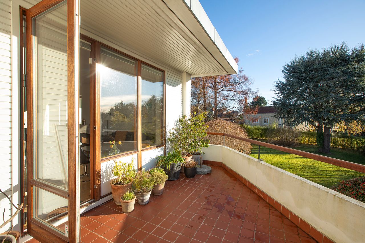 Boligen ligger uforstyrret på en højt placeret grund, hvor haven folder sig ud som en lille vedligeholdelsesvenlig park med sjældne træsorter, rododendron og smukke udsigtslommer. Herfra og fra boligens altaner har man et flot kig ud over Hundesømosen og de grønne omgivelser. Et fredfyldt miljø tæt på Ermelundens skovstier og Dyrehavens vider. Bellevue Strand er blot en kort cykeltur væk.